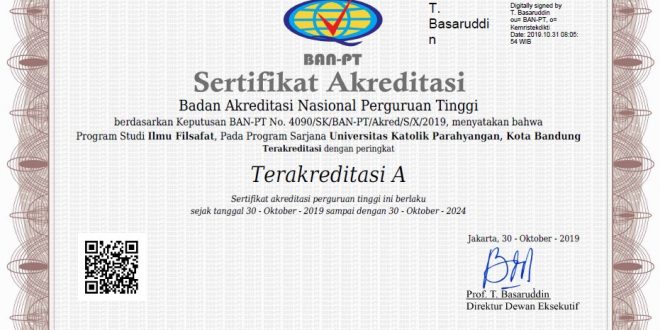 Setelah menerima visitasi para asesor pada Jumat, 25 Oktober 2019, Program Studi Ilmu Filsafat (Sarjana), Fakultas Filsafat, UNPAR, memperoleh nilai akreditasi ‘A’. Pencapaian ini tercantum dalam Sertifikat Akreditasi berdasarkan Keputusan BAN-PT No. 4090/SK/BAN-PT/Akred/S/X/2019. Di bawah ini terlampir foto-foto selama visitasi tersebut.