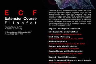 Extension Course Filsafat kali ini akan diselenggarakan dengan tema “Philosophy of Mind”. Kursus filsafat untuk umum ini dimulai pada 22 September hingga 8 Desember 2017. Kegiatan yang bertempat di Kampus FF, UNPAR, Jl. Nias 2 Bandung, ini biasa dilakukan pada Jumat sore hari dengan menghadirkan banyak pembicara berkompeten sesuai dengan …